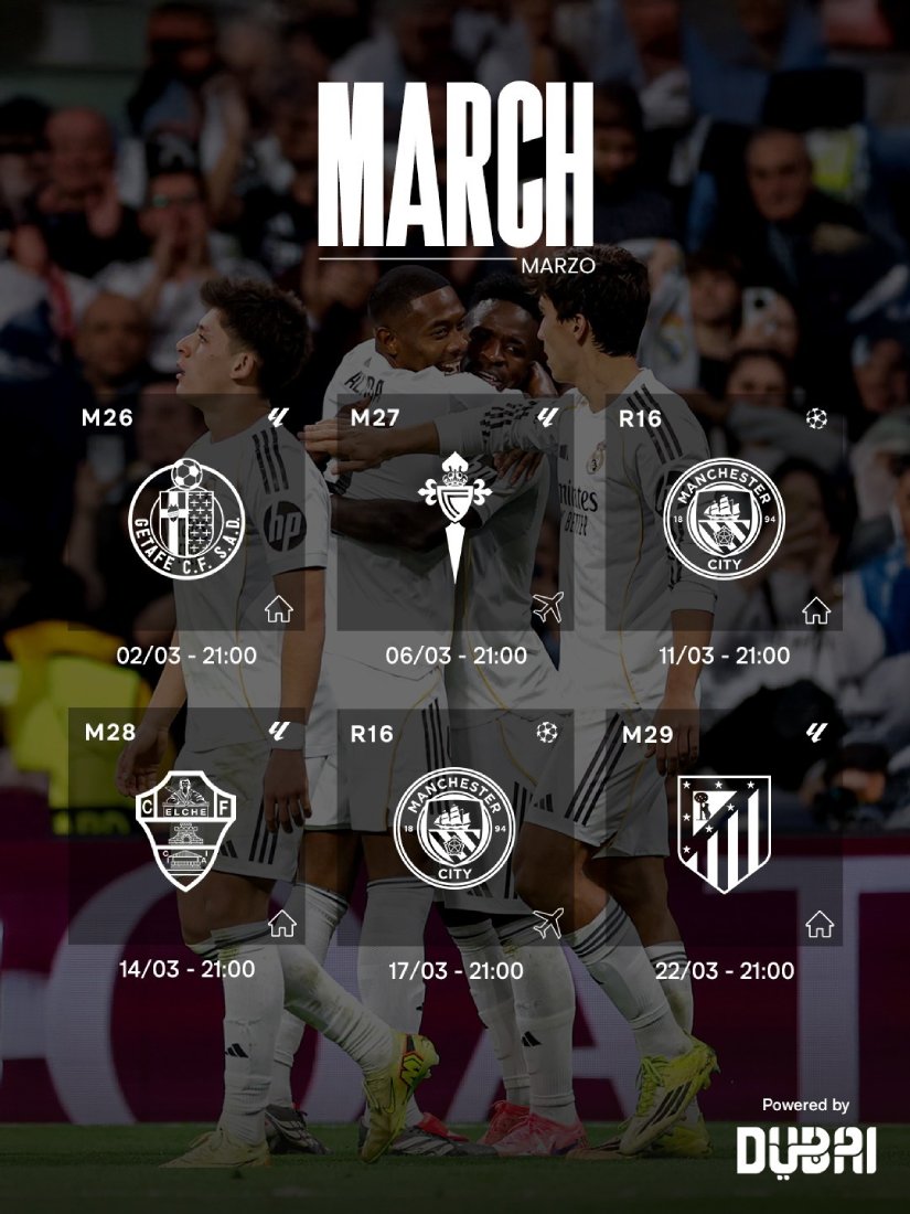 The month begins on Monday, March 2, with Getafe at the Santiago Bernabéu. On paper, they are the only side in this stretch without unfinished business. Madrid edged the reverse fixture without much turbulence. But the context has changed dramatically. Kylian Mbappé is sidelined with a knee issue, while Jude Bellingham, Éder Militão, Dani Ceballos and Raúl Asencio are also unavailable.