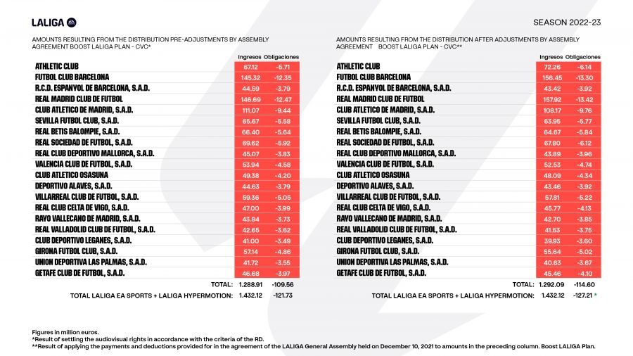 Out of the €1.292 billion distributed overall, more than €420 million is shared by these three clubs alone. The figures underline that, despite a more balanced TV rights model, the league’s biggest clubs continue to claim a significant share of the revenue.