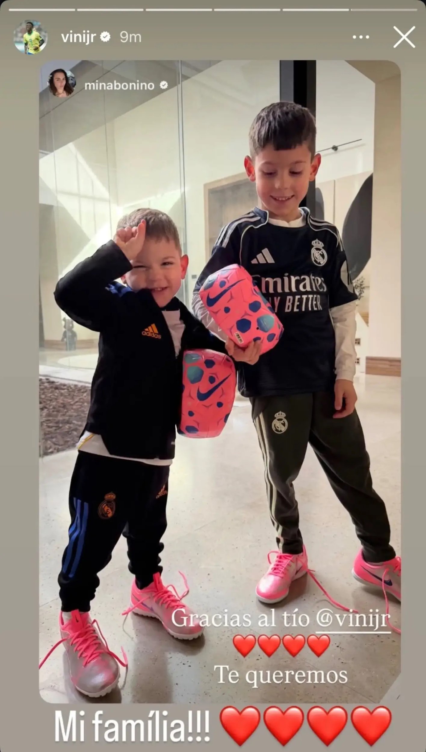 Valverde’s wife, Mina Bonino, shared the touching moment on Instagram, writing: “Thank you to uncle Vini Jr. We love you."